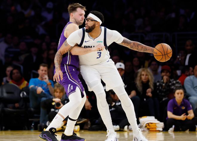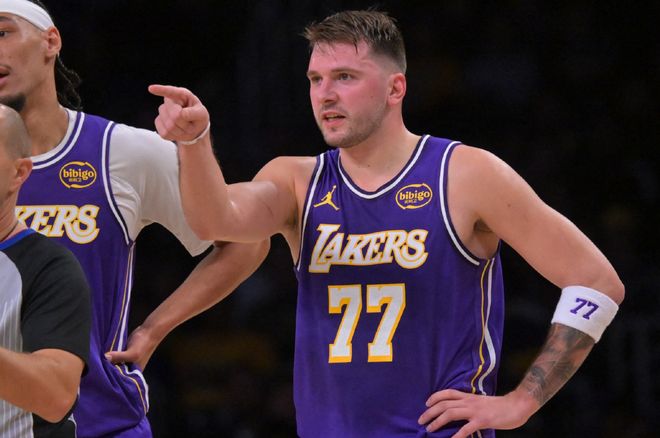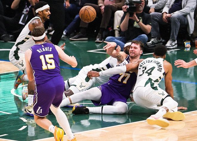 简单来说,湖人和勇士其实SRS值差不多,甚至勇士还强点,只不过湖人进攻好,勇士防守好(库里不在的情况下)。回到湖人这里,本赛季詹姆斯复出后,场均17.6分5.7篮板7.2助攻,产量下滑比较大,但出战的比赛7胜2负,比如赢太阳依靠罚球,击败76人最后时刻天神下凡,击败猛龙时给八村塁的精准助攻,詹姆斯是能在关键时刻,做到统治比赛的。此外詹姆斯带着海斯+拉拉维亚+里夫斯+文森特这套替补阵容,百回合能赢对手24.5分。但湖人问题的关键点,则是东契奇。本赛季场均34.7分(联盟第一)8.7篮板8.8助攻,空有数据的刷子。